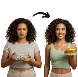 Ou corta tudo que gosta, ou come sem prazer. E no fim, vem o sentimento de culpa, o desânimo… e a vontade de desistir de novo. E isso só te deixa cada vez mais distante do seu emagrecimento.